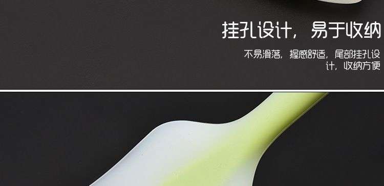 【特點】硅膠部分耐冷熱溫度為-40℃到+230℃,塑料柄部分耐熱110℃,可以重復使用, 造型新穎,彈力好,為我們快樂的廚房又增添一點絢麗!